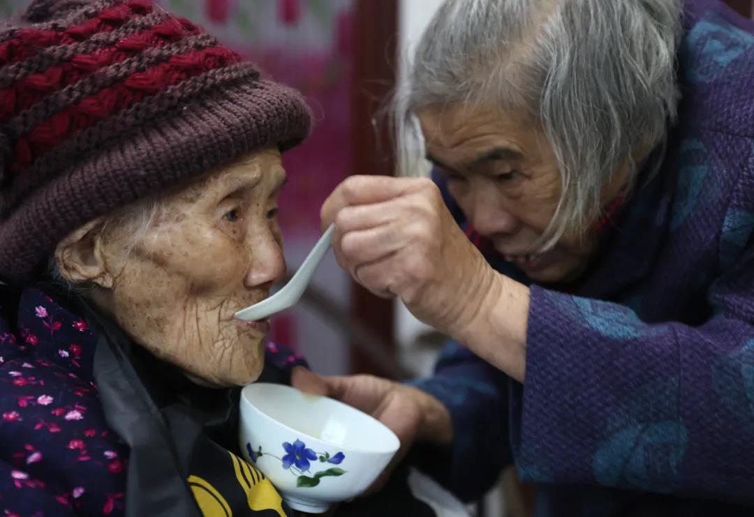 80的儿媳照顾107岁的李淑珍老人。