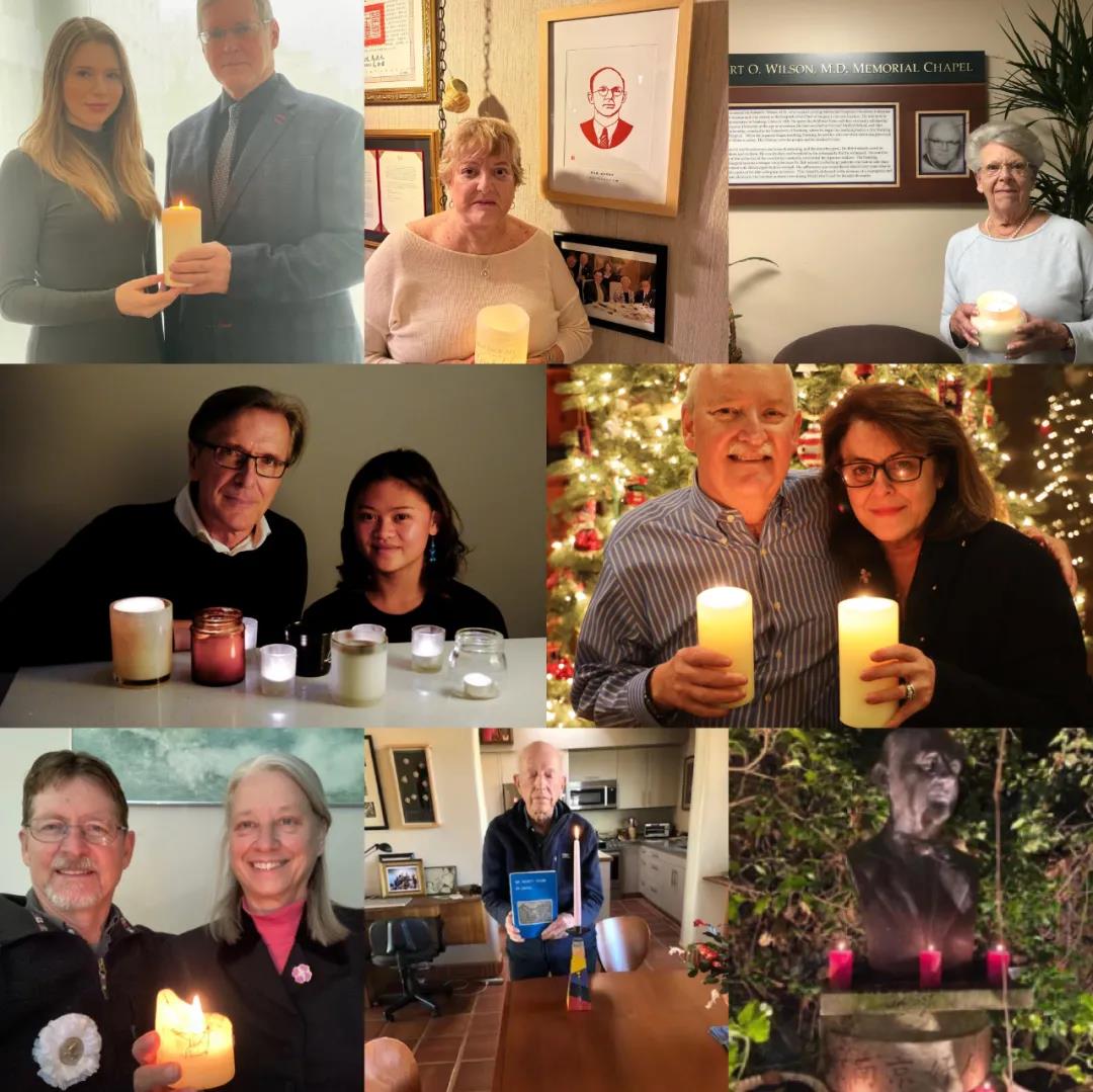 今年公祭日夜晚的烛光祭,纪念馆通过冰屏现场展现了在全球范围内征集到的点亮烛光影像,其中包括约翰·马吉之孙克里斯·马吉、罗伯特·威尔逊之女、约翰·拉贝之孙托马斯·拉贝、理查德·布莱迪之孙斯蒂芬·布莱迪等国际友人后代手捧烛光的影像。烛光点点,疫情不能阻挡全世界各地爱好和平的人们,将和平之烛活汇聚成一束照亮希望的光。