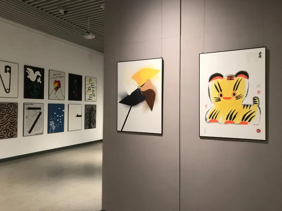 在我馆展出的《小老虎,爱和平》海报(右一)
