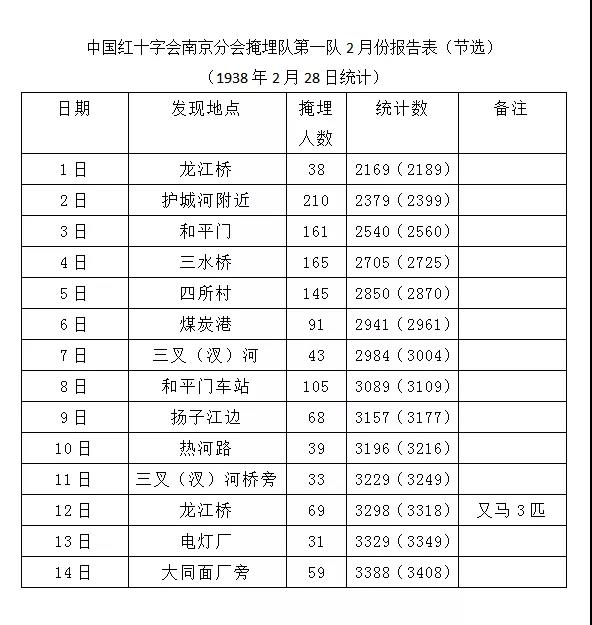1938年的春节期间,中国红十字会南京分会掩埋队每天都需要组织掩埋尸体。元宵节这天,掩埋队第一分队的成员们在大同面厂旁掩埋了59具尸体……从2月1日到14日元宵节期间,他们总共掩埋了1257具尸体。