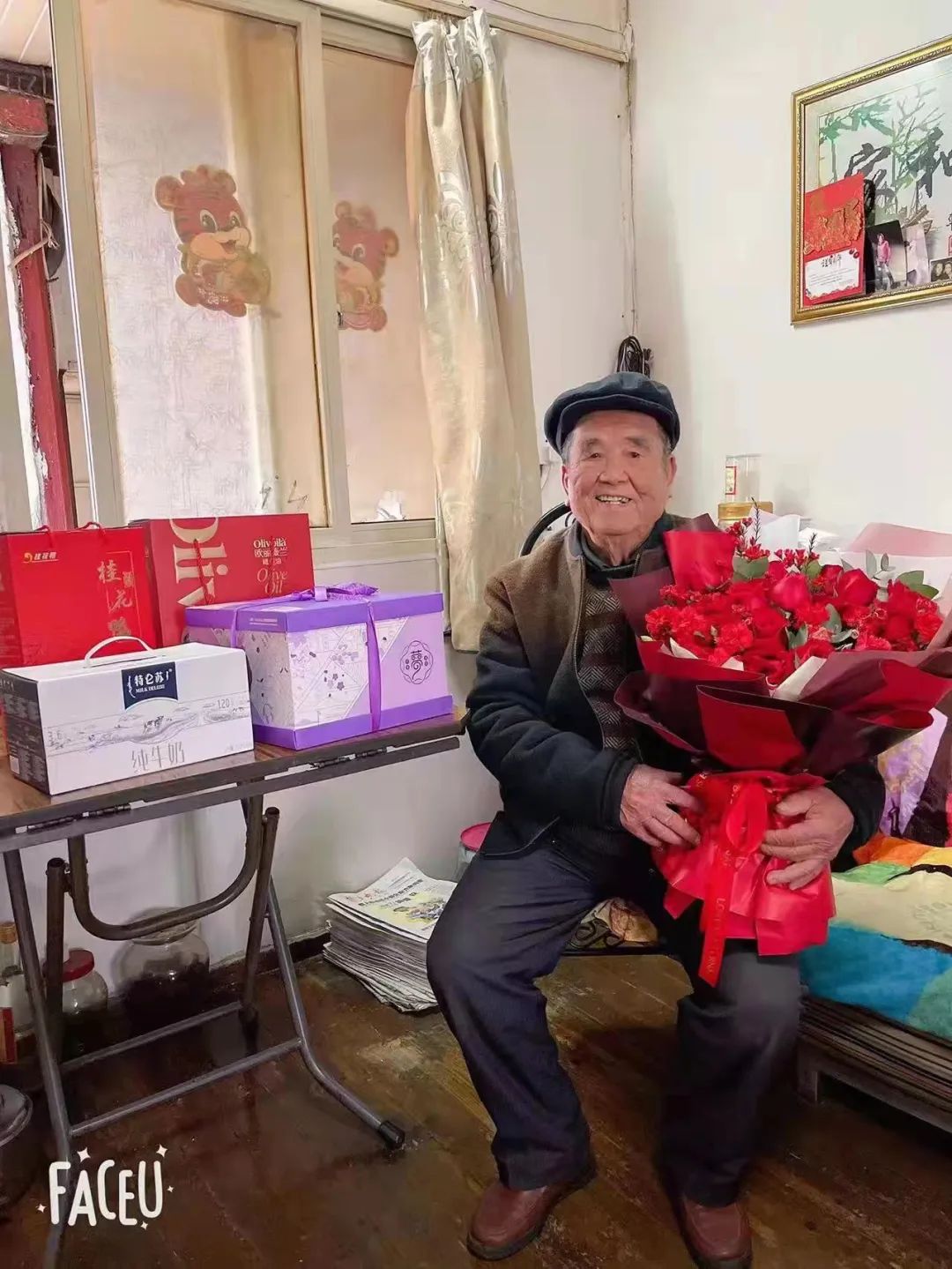 “爷爷,您好!祝您生日快乐!”昨天是南京大屠杀幸存者马庭宝的生日,受疫情影响,不能登门拜访,纪念馆所属南京侵华日军受害者援助协会工作人员线上订购鲜花、生日蛋糕、牛奶、桂花鸭等慰问品,并通过视频连线的方式,问候爷爷,祝福爷爷生日快乐!健康长寿!
