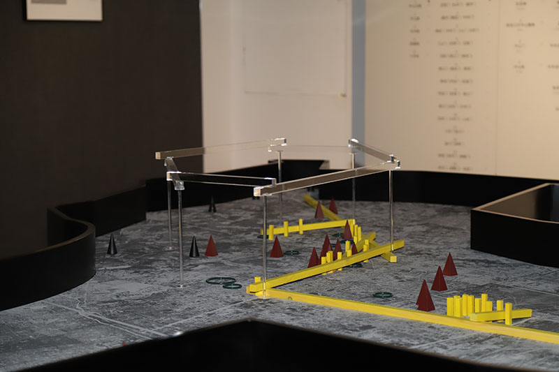 在展览中设置了一个拥挤、闭塞和压抑的内部空间,以观众的身体感知作为媒介,去感受战争中的身体姿态,运用摄影、装置、声音、图纸、模型等全面呈现抗战碉堡内部的身体经验。