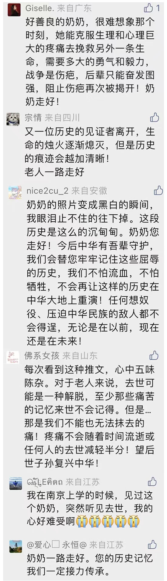 5月,我们含泪送走南京大屠杀幸存者巫吉英奶奶。老人已化作天上的星星,愿一路走好!幸存者正在老去,他们直面苦难的勇气,以及积极、乐观、开朗的生活态度,激励了无数网友。
