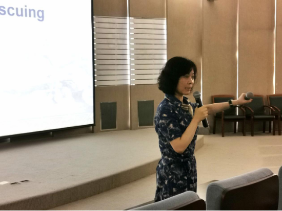 下午,紫金草国际和平学校讲师、南京外国语学校的尚媛媛老师为同学们带来一场纯英文的授课《拯救背后的动机》,通过文字、影视资料等向同学们介绍了拉贝等国际友人挺身而出救助难民的故事。