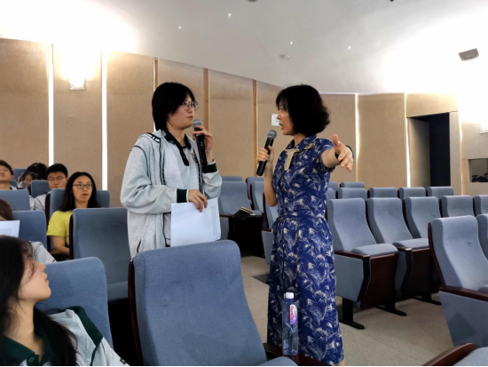 课堂上,尚老师与同学们频频互动。有同学起身分享心得:电影片段让自己仿佛回到了那个环境中,灾难面前,人们需要有一个人挺身而出,一个人站出来了,就会有更多的人站出来。