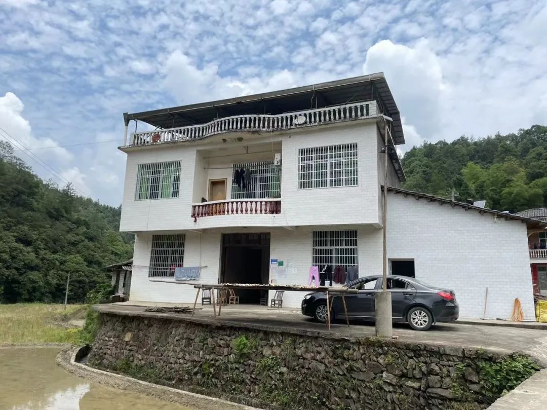 这是一个生活静谧的人家。屋檐上燕子做了数个窝,主屋旁边的鸡舍里,刚刚下完蛋的母鸡“喔喔喔”地叫着,屋前晒着笋干,远处群山绵延。