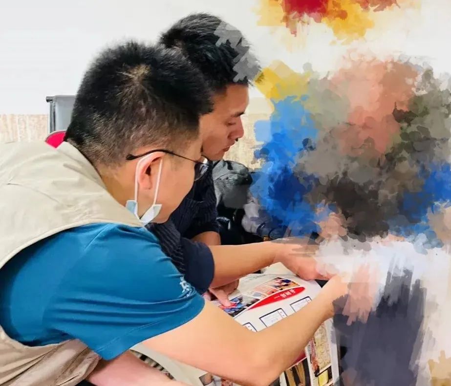 欧奶奶因耳聋,无法交流。志愿者把她哥哥的照片拿给她看,她马上兴奋地比划着这是她哥哥,比她大三岁。于是,工作人员驱车找到数公里外,欧奶奶的哥哥家。