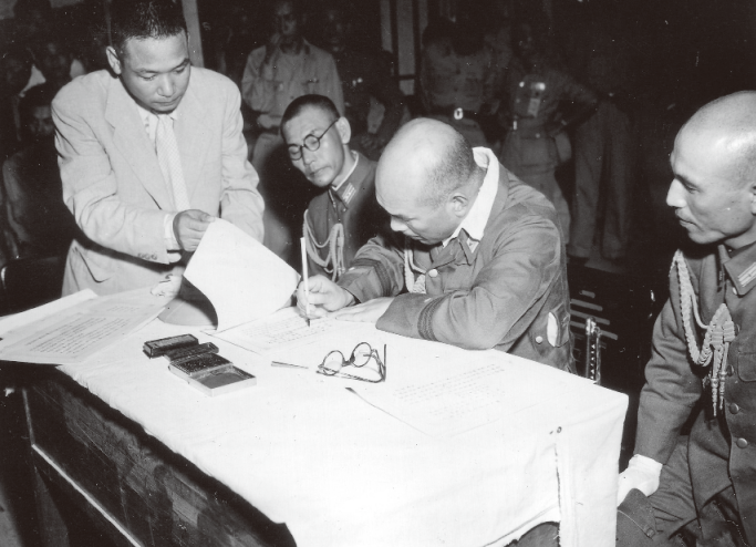 中国第十一战区司令长官孙连仲签字接受日军投降