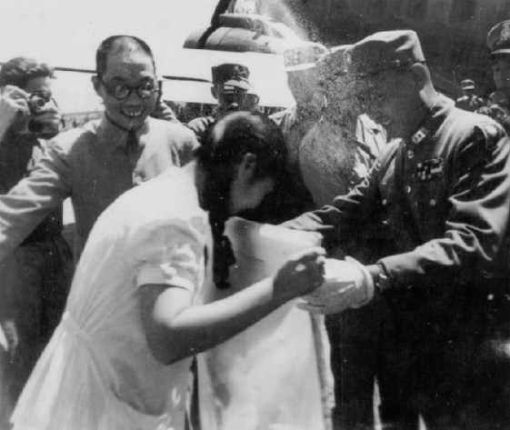 日本中国派遣军参谋长小林浅三郎向中国陆军总司令何应钦呈递《降书》