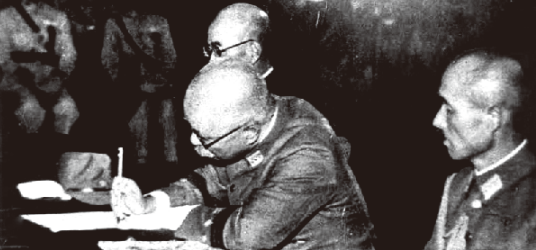 日本驻台湾总督兼日本第十方面军司令官安藤利吉在投降书上签字