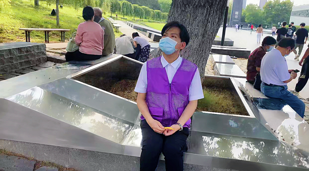 23岁大学毕业生徐彦泽是土生土长的南京人,也是纪念馆紫金草志愿者。当感到疲惫时,他便会来到大枫杨树下,坐在“希望之寄”座椅上,回望展厅的方向,聆听《感同身受》,舒缓一下心情。“成为紫金草志愿者后,我更加深切体会到同胞们曾经历过怎样恐怖的历史。我希望尽己所能,把这段历史传播给越来越多的人。”他说。