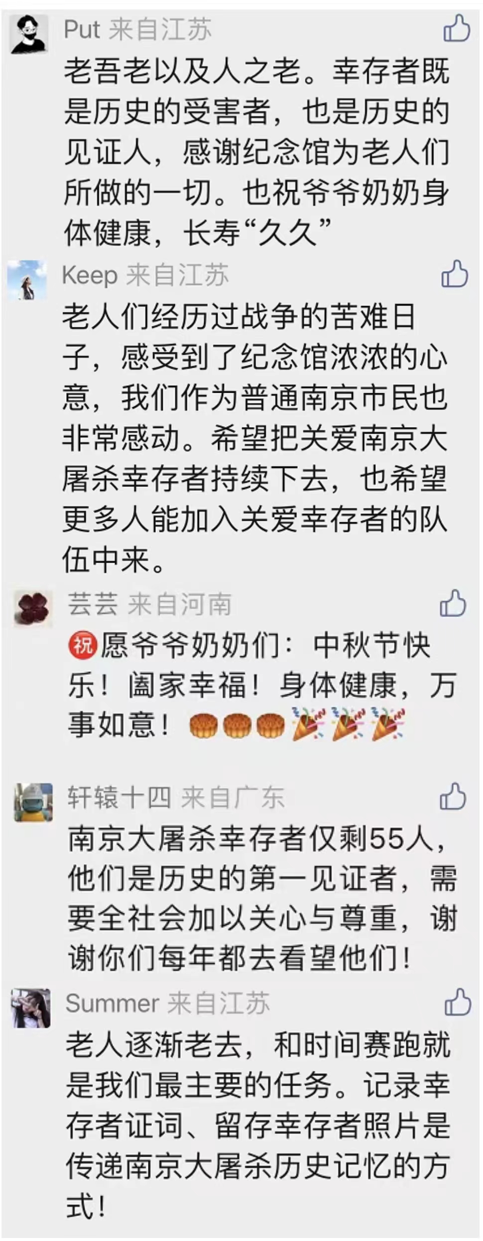 南京大屠杀幸存者是纪念馆最牵挂的人。今年中秋节前夕,我们上门看望老人们,送去温暖与祝福,与他们一同过中秋。
