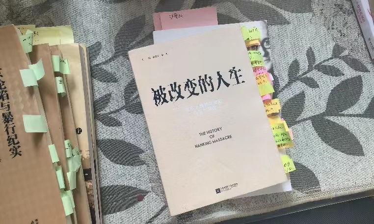 杨筱艳告诉小编,在她的儿子小学五升六时,她送儿子上辅导班,在鼓楼区一个城市书房的半地下室,看到了很多《地方志》,里面有全套《南京大屠杀历史》。“最早看的是徐志耕老师的、朱成山老师的书,后来看到南京大屠杀幸存者口述历史的书《被改变的人生》,我感到内心特别震撼。”联想到自己外公外婆的亲身经历,她特别想提笔写一本书。