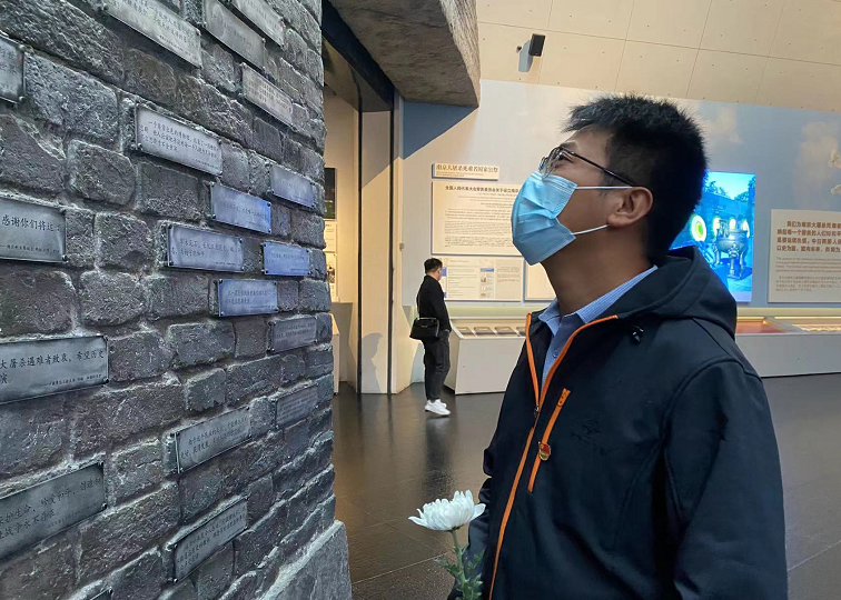 钟同学在纪念馆中参观了近4个小时,他感触颇深,“刚进入展厅时,看见墙上密密麻麻的照片和名字,它们代表着一条条鲜活的生命。”钟同学的太爷爷是烈士,父母都是党员。他表示,我们要永远热爱祖国,也祝愿祖国明天更加美好、更加富强!