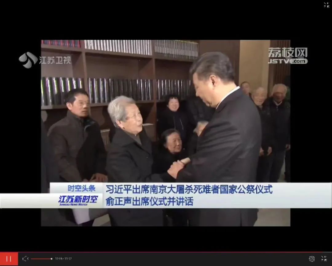 当天晚上,中央电视台新闻联播,省、市电视台都报道了上午国家公祭仪式现场和习近平总书记亲切会见南京大屠杀幸存者代表的新闻,其中习近平总书记亲切地握着奶奶手的镜头时间最长。和奶奶住同一个小区的邻居看到新闻后,第二天见到奶奶都纷纷表示祝贺。