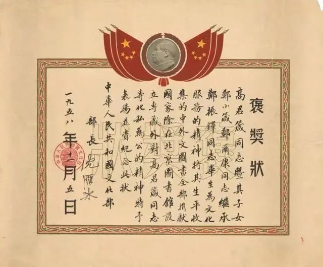 抗战时期,他在上海“孤岛”冒险抢购善本,殚力与海外书商竞购,不使民族文献沦于外国;新中国成立后,为充实国家藏书,他竭尽心力,多方购求古籍书画;他逝世后,家人根据其遗愿,将藏书悉数捐赠;他曾在给友人的信中表明自己努力的缘由——“一切为了大众的利益,一切为了民族文化的发展”,这正是他一生秉持的文学和学术研究的宗旨……