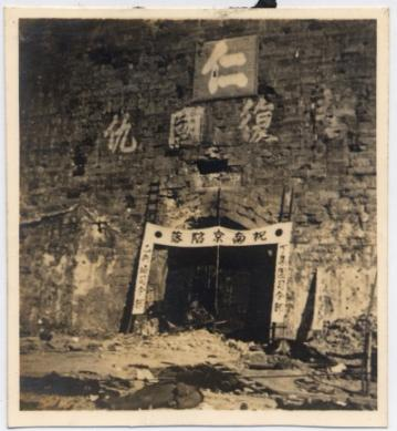 日军侵占南京后,在中华门挂上了“祝南京陷落”等大幅标语