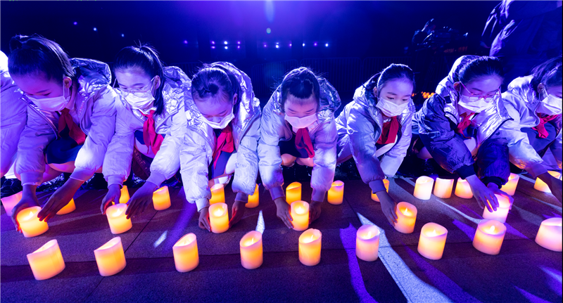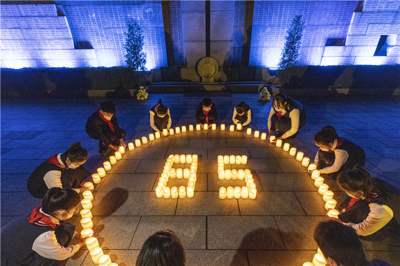 点亮“85”造型蜡烛,铭记85年前惨痛历史