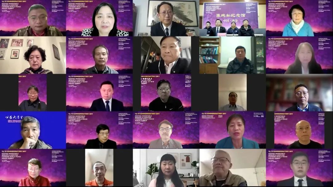 12月13日上午,南京市侨联组织在宁部分侨领、归侨侨眷、留学生、基层侨务工作者等,连线20多个国家和地区分会场,开展线上“云集会”,共同观看南京大屠杀死难者国家公祭仪式直播,同步举行悼念活动。南京市侨联今年还发起了世界和平火炬云接力活动。截至发稿,已有158个国家和地区的逾32万海外华人华侨参与。