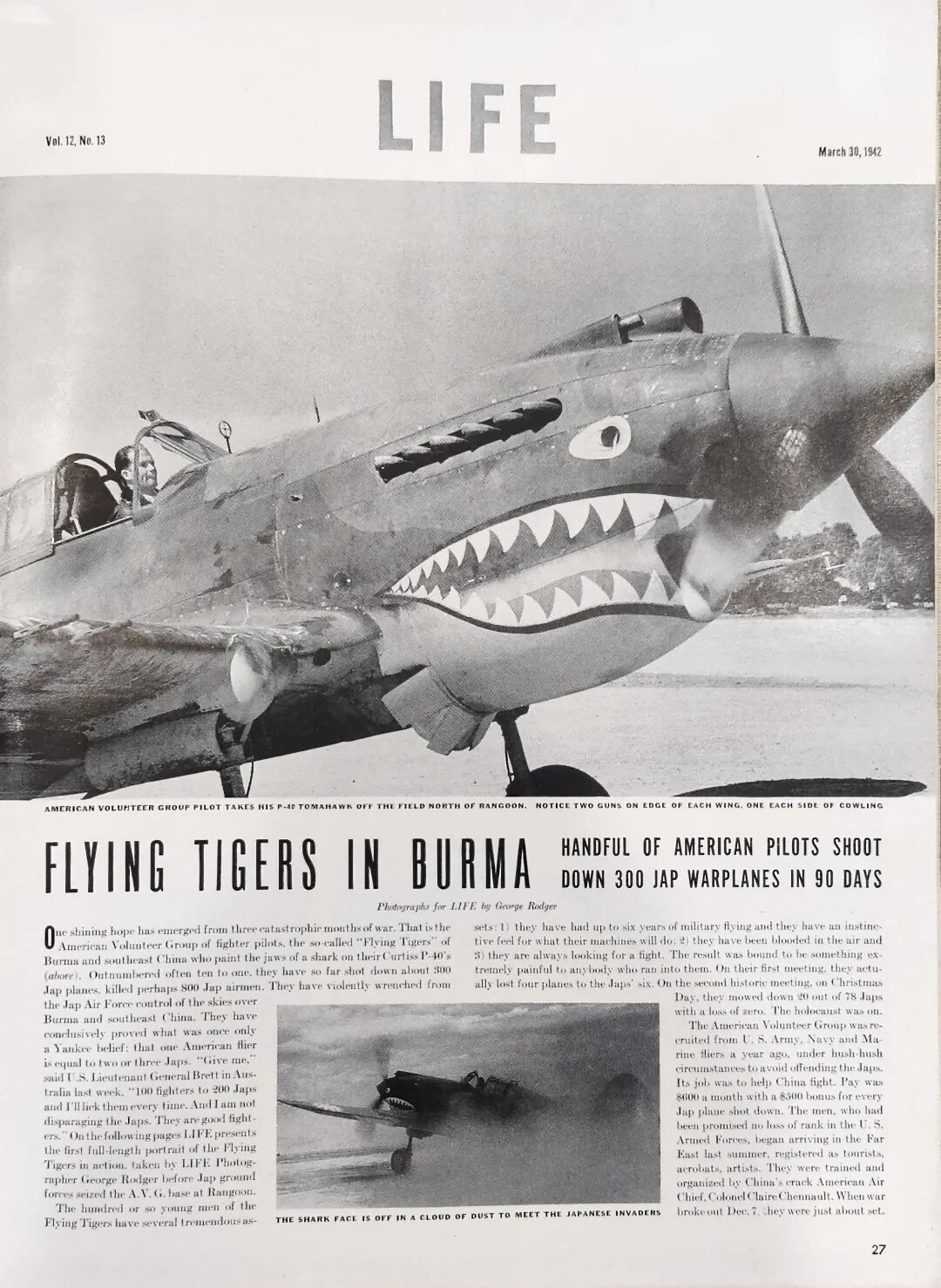 作为飞虎队后人,穆言灵对飞虎队相关史料格外关注。此次,她将多年前在美国征集到的美国杂志《Life》捐赠纪念馆。该杂志发行于1942年3月30日,其中刊登了飞虎队在缅甸作战经历,以及飞虎队成员介绍。穆言灵说:“我把这份杂志交给纪念馆,希望让更多人了解飞虎队的历史。”