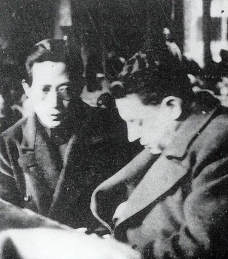1939年,希伯(右一)聆听报告