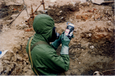 1998年8月18日至19日,在南京九华山细菌工厂遗址,挖出几十具人类头盖骨与尸骨,支离破碎并伴有浓烈的刺鼻药味。经法医学、生物学专家鉴定,认定这批尸骨是一六四四部队活人实验中受难者的遗骸。