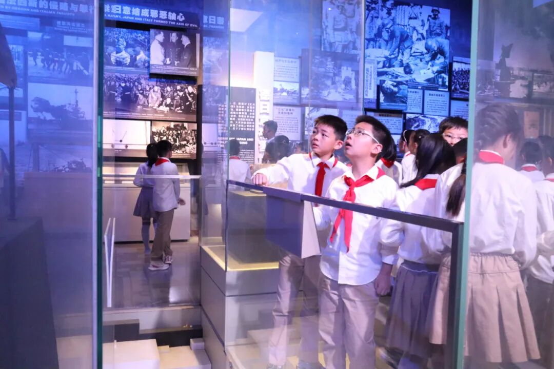 活动尾声,南京市金陵汇文学校小学部的孩子们参观了“正义必胜 和平必胜 人民必胜——中国战区反法西斯战争胜利暨审判日本战犯史实展”,铭记历史、珍爱和平。