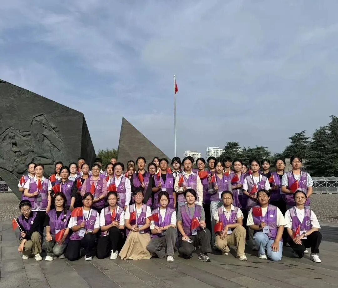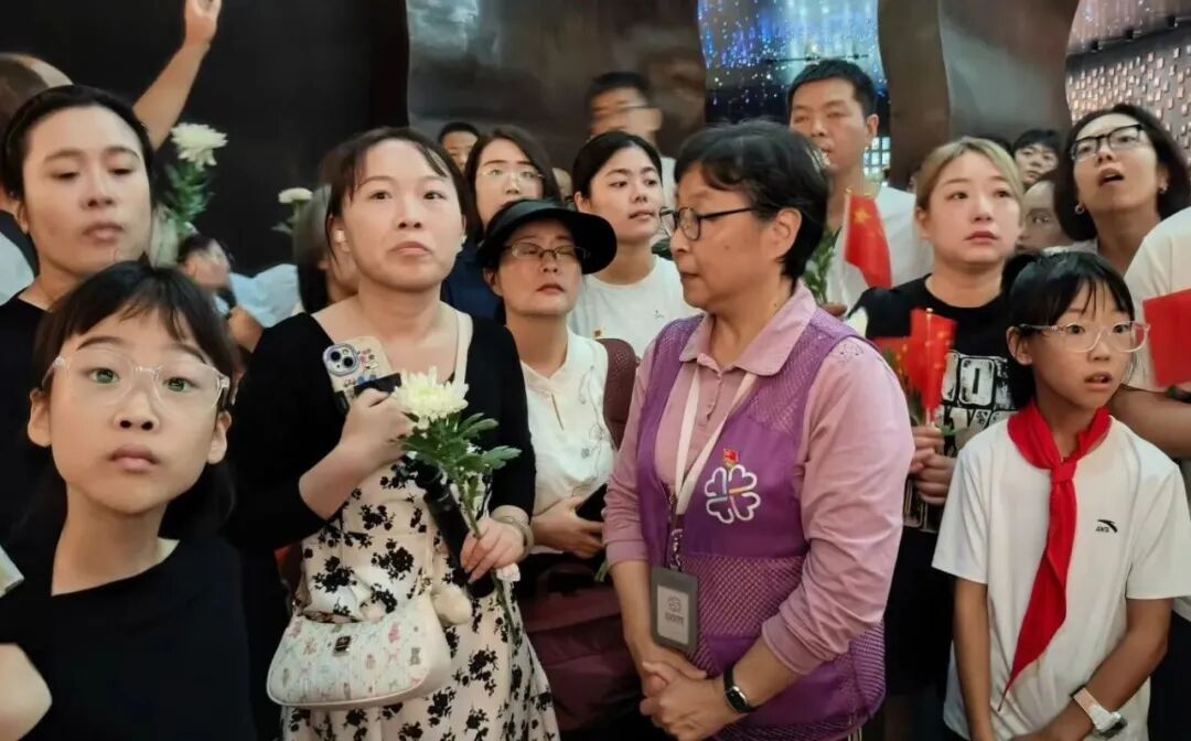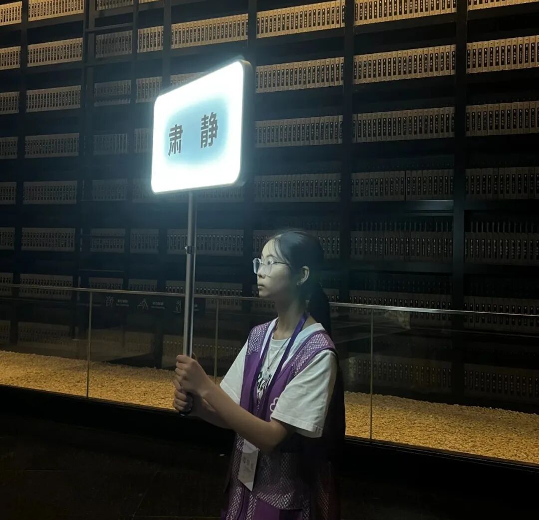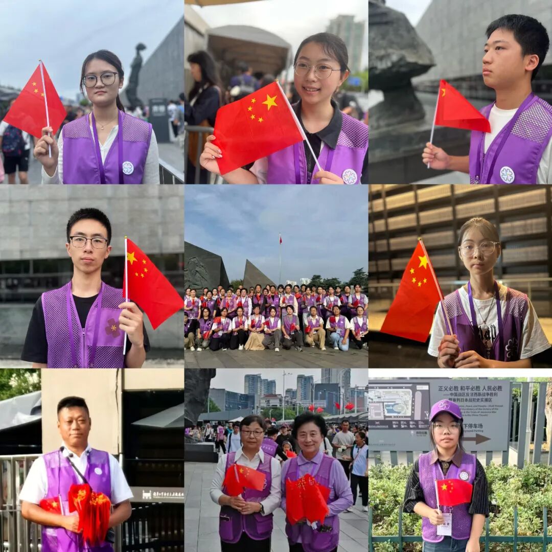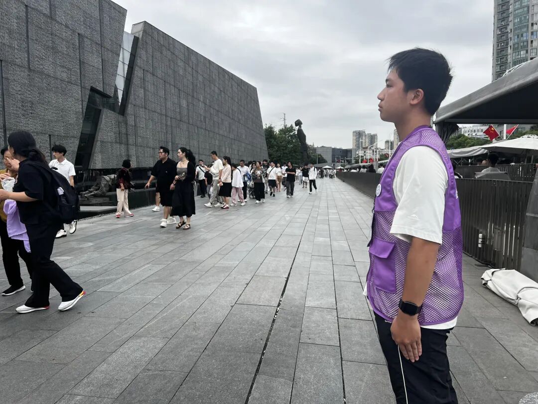 国庆长假期间,身着紫色马甲的志愿者们,始终活跃在纪念馆这座爱国主义教育基地的服务一线。八天时间里,将有335位志愿者全情投入,承担文明引导、公益演出、点位讲解、宣传报道等多项工作。场馆中,平均每日近40名志愿者身着“志愿紫”忙碌穿梭,与“国庆红”交相辉映,恰似“原来姹紫嫣红开遍”,勾勒出假期里最美的风景线 。