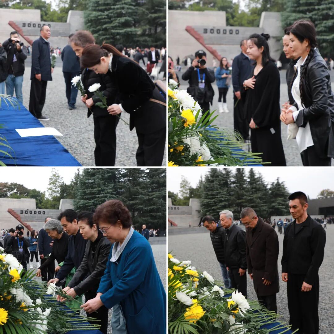 纪念馆公祭广场庄严肃穆,艺术家们全体肃立,向南京大屠杀死难同胞及抗战英烈默哀、敬献鲜花,这份历史记忆深深镌刻在每个人的心中。