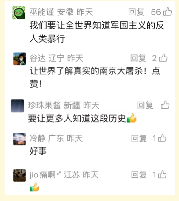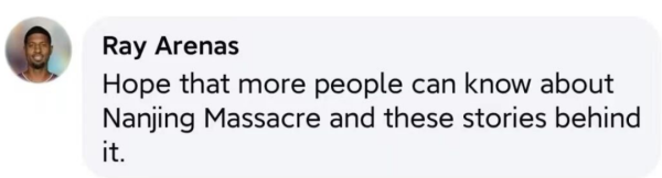 外国网友评论:“希望更多人了解南京大屠杀历史,以及背后的故事。”