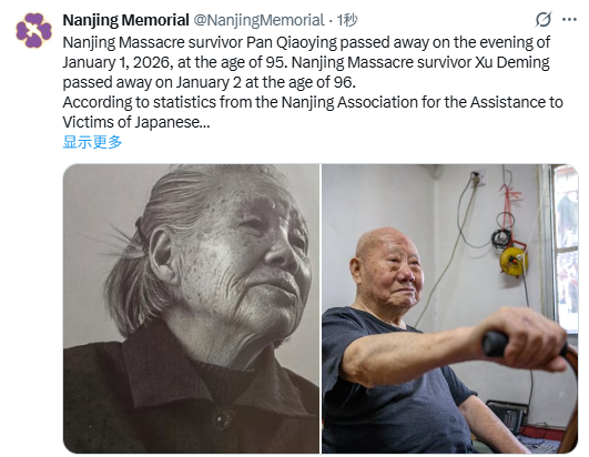 1月,南京大屠杀幸存者潘巧英、徐德明与世长辞,网友纷纷留言送别坚强的老人。
