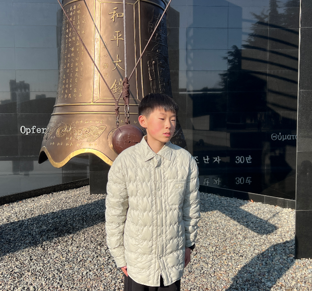 来自上海的12岁小朋友贺明骏有些腼腆,一直喜欢历史的他之前曾去过侵华日军第七三一部队罪证陈列馆,这次专门预约我馆来深入了解南京大屠杀这段历史。他说:“我们的国家曾遭受过太多不幸了。感谢现在强大的祖国给予了我幸福和平的生活。”