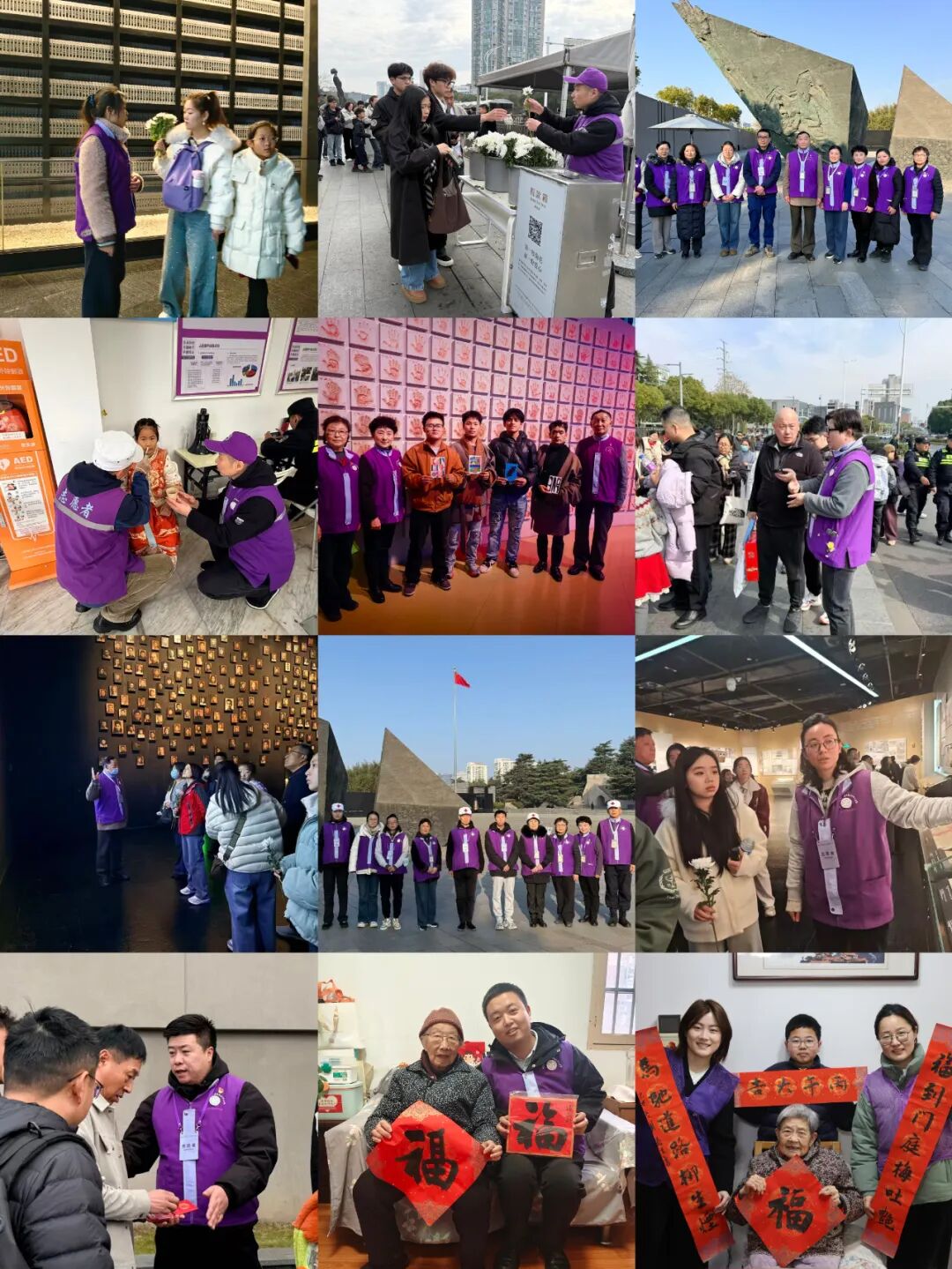 新春佳节,万家团圆之时,纪念馆内,我们这群身着紫金草马甲的志愿者,选择用坚守迎接新年。我们来自不同行业,跨越不同年龄,却以同样的热忱,守护着历史的传递与观众的安全。