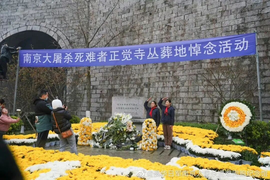 南京市青少年自发前往位于武定门的正觉寺遇难同胞纪念碑前举行悼念活动