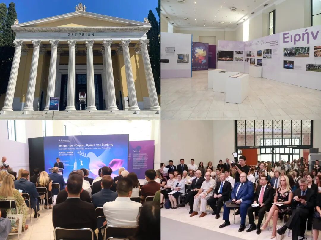 中国驻希腊大使方遒在致辞中表示:“此次展览不仅是南京与雅典两座城市的交流互动,更是中希两大古老文明跨越山海的深情对话。我们愿同希方一道,坚持弘扬正确二战史观,坚定维护二战胜利成果,让推进全球治理体系变革、推动构建人类命运共同体的成果,更多更好造福全人类。”