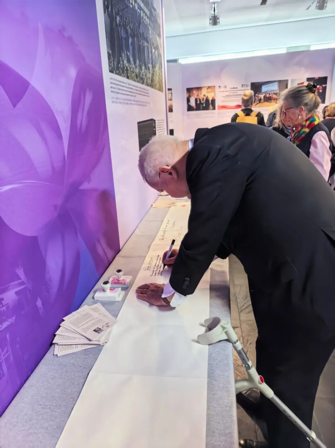 柏林中国文化中心副主任何文波在致辞中指出:“纪念这段历史,从来不是孤立的回望,而是通过文化与记忆的桥梁,让不同国家、不同民族的人们读懂中国人民在侵略战争中承受的苦难、对和平的执着坚守,以及人类在面对共同邪恶时的正义共鸣,从而凝聚起超越时空的精神共识。”