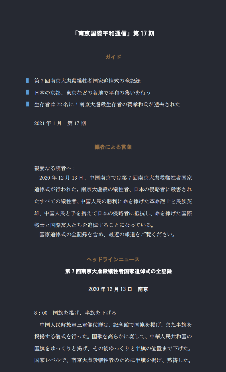 第7回南京大虐殺犠牲者国家公祭日の全記録