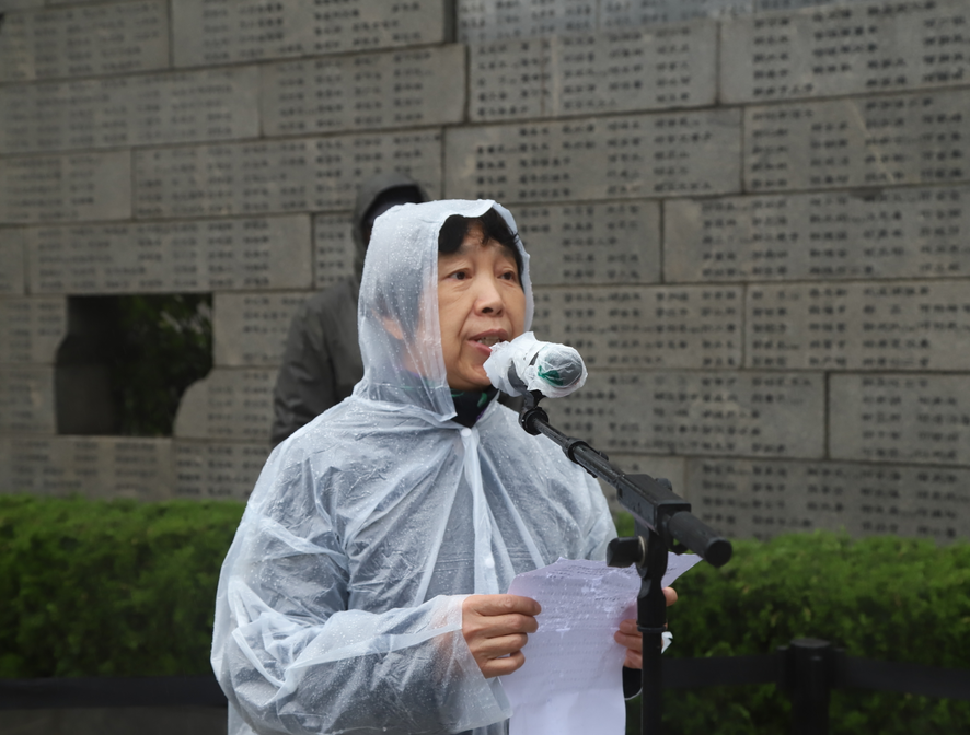 今年は南京大虐殺が発生して86周年で、平均年齢が93歳を超えている生存者は歴史の証人として衰えつつあり、南京大虐殺の記憶伝承はその後代の肩にかかっている。余昌祥氏は去年亡くなり、その娘さんの余惠如さんが記憶リレーを受け継ぐ。彼女は清明節追悼式は犠牲者遺族のことだけでなく、更に重要なのは歴史を銘記し平和を大切にする意識を呼び起こす担い手であると述べている。