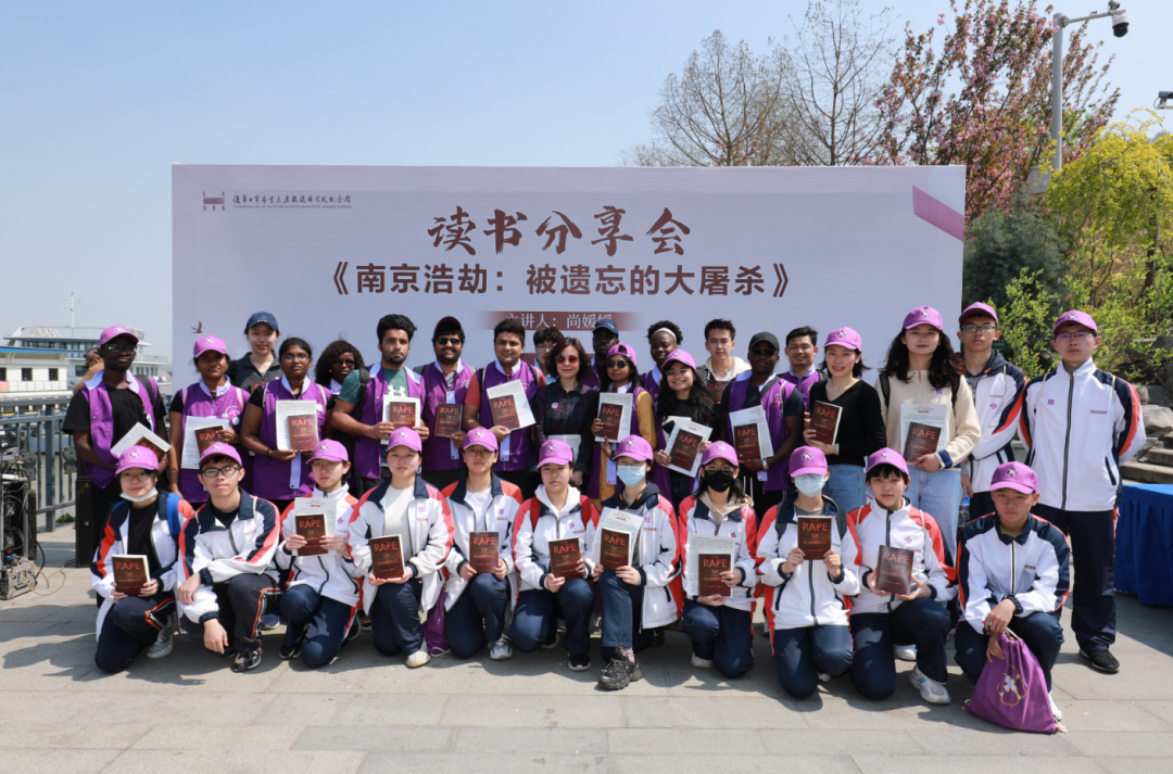 その後、長江辺で行われ南京外国語学校の教師尚媛媛先生が司会した読書会で、尚媛媛先生は英語と中国語で学生やボランティアに張純如氏のことを話した。「張純如さんは南京に来てから、中山埠頭、草靴峽、燕子磯などの所まで訪ねてきて、歴史の真相を探り求めました。彼女は生前、‘一人の人の力’を確信して、歴史に直面し、正義と平和を追求しました。みなさんにも‘一人の人の力’を固く信じて彼女のように歴史の良心を持つ闘士になってほしいです。」と尚媛媛先生が言った。