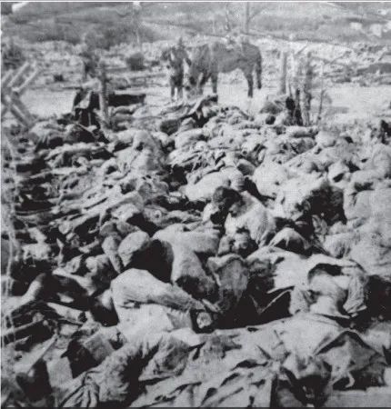 日本軍に集団虐殺された中国軍民の屍体が山のように積もっている