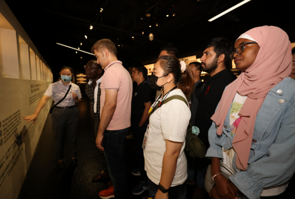国際平和の日に世界34カ国からの300人近くの留学生が 記念館に集まり平和を語る 国際平和の日に、アフガニスタン、エジプトなど世界34カ国からの300人近くの外国人留学生が記念館に集まり歴史を勉強し、平和を語り合った。彼らは平和の鐘を撞き、「南京大虐殺史実展」を見学した。そして記念館の最終展示室の平和の壁前で、「heal the world」の歌声を聞きながら「平和」という文字を書いてみた。