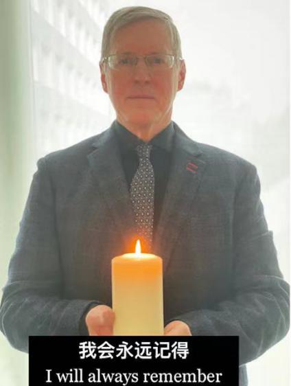 He is the grandson of Drum Tower Hospital physician Clifford Trimmer. Dr. Trimmer's descendants held a candlelit ceremony at their home, carrying white candles, Zijin Grass badges and public memorial badges. " Amy and I send our warmest wishes to you and the people of Nanjing," Steven Morris Trimmer wrote in the email, “We are grateful that we have been able to join you for many previous National Memorial Days. With my grandparents having called Nanjing home for nearly 30 years, and my father having been born and raised there, Nanjing and her people hold a special place in our hearts. The resilience that your ancestors showed 84 years ago, and the resilience, kindness and compassion you continue to show today brings us hope for a future of peace and harmony."