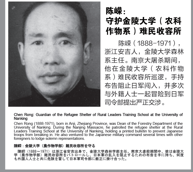 In fact, in addition to those foreigners, about 1,500 Chinese people also played a role in saving the refugees. Among them were managers and grassroots-level personnel at the International Committee for the Nanking Safety Zone, as well as personnel from the International Committee coordinating agencies. They risked their lives to support the refugees even if they suffered a lot.