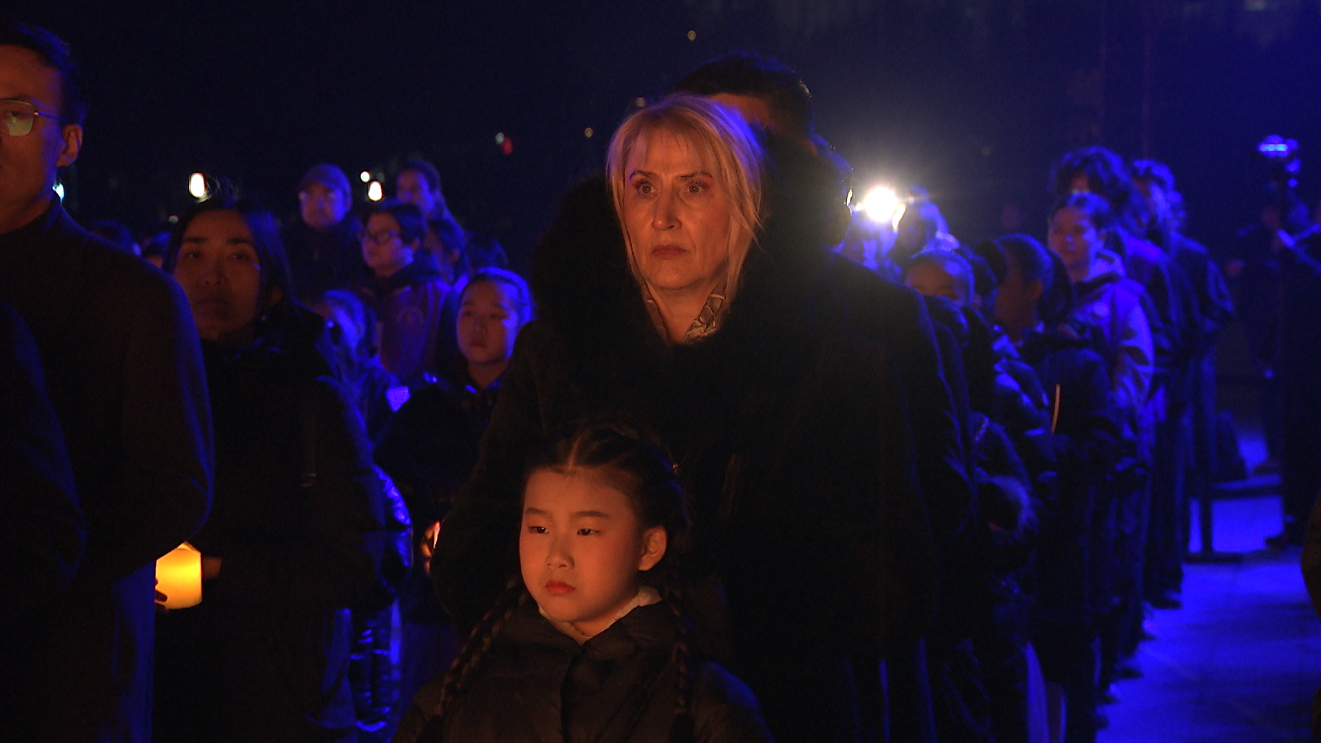 A trumpeter played Nanjing Memories. Representatives from the historical memory inheritors of the Nanjing Massacre, descendants of international friends, overseas Chinese representatives, students, domestic and international volunteers from Zijin Grass, as well as peace-loving individuals from all walks of life at home and abroad, held candles to commemorate the deceased, look forward the future, and send out a voice of peace from Nanjing to the world.