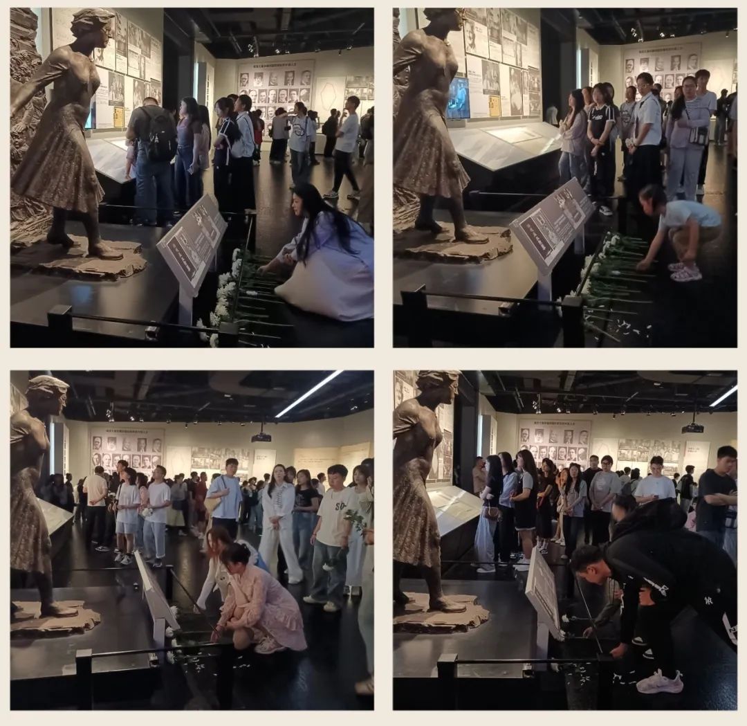 This morning, in front of the statue of Minnie Vautrin at the "Nanjing Massacre Exhibit," visitors spontaneously laid chrysanthemums, her favorite flowers in life.
