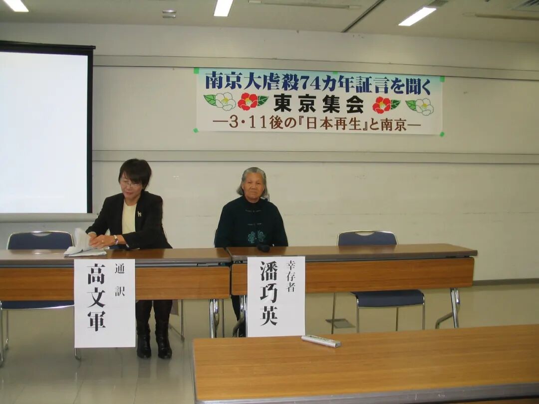 2011年12月,80岁的潘巧英应日本“中国战争受害者证言集会”之邀,赴日本大阪、东京等地参加为期12天的证言集会。